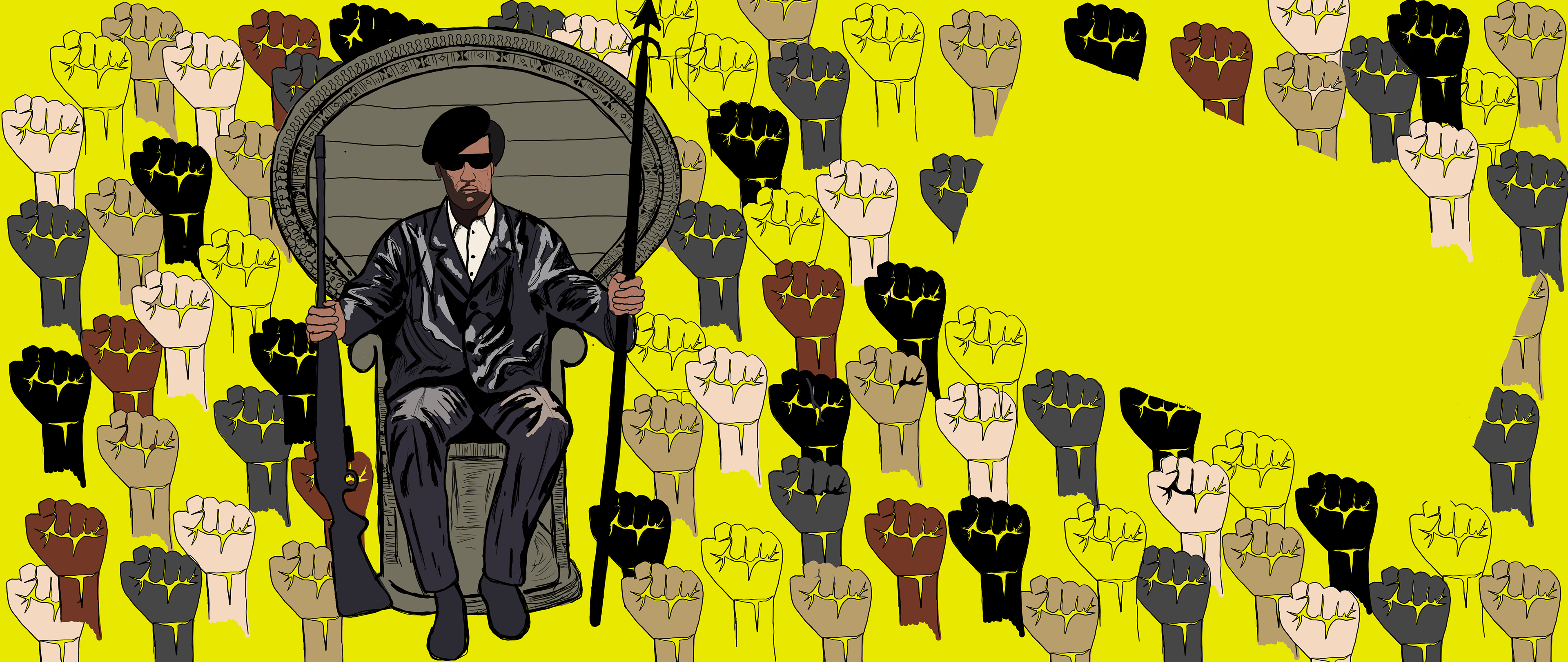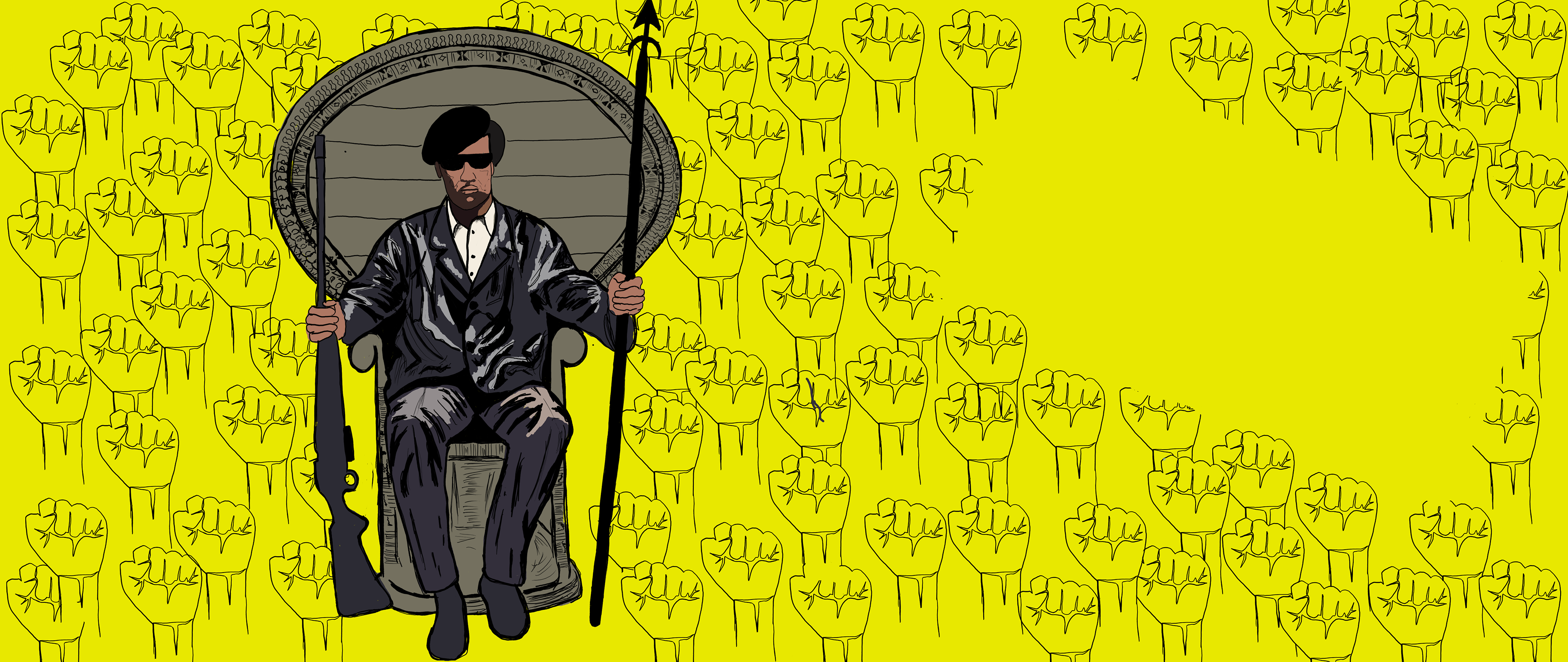I began with an original sketch inspired by Huey P. Newton, seated in his iconic chair. My initial concept focused on strength, resistance, and historical identity.